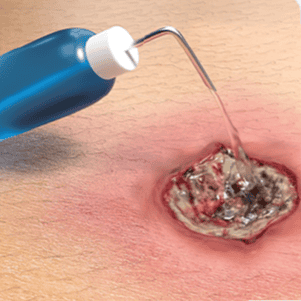 9. Apply product by pouring generously onto the wound bed and leave on for up to 60 seconds